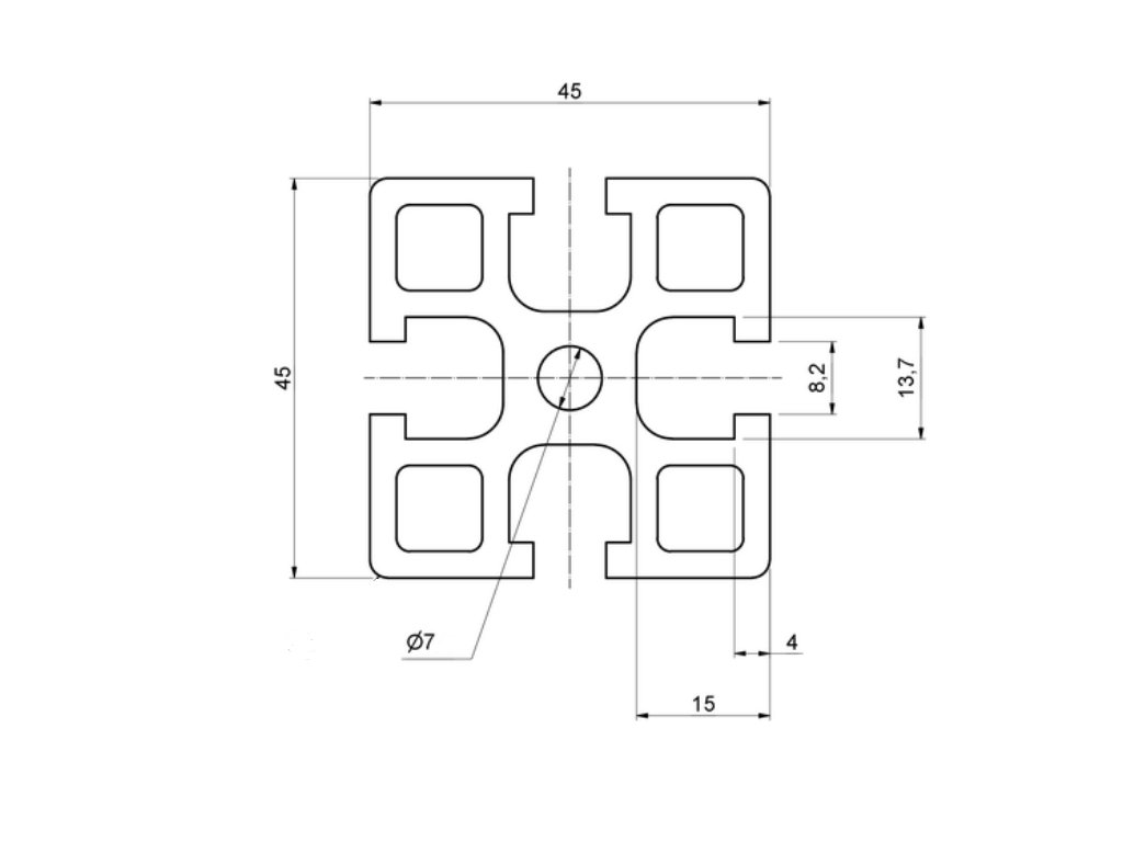 Hliníkový profil 45x45mm s povrchovou úpravou.